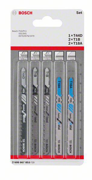 Bosch Accessories 2608667853 Kit di lame per seghetto alternativo Wood and Metal, 5 pezzi, codolo a doppia camma 5 pz.