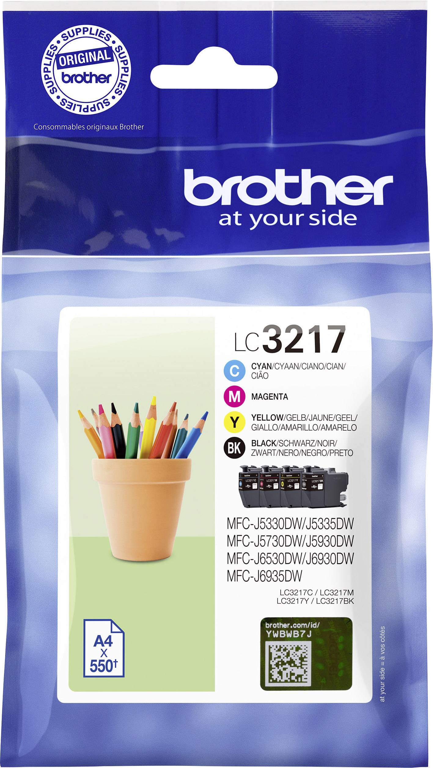 Brother Cartuccia LC-3217 VALDR Originale Imballo multiplo Nero, Ciano, Magenta, Giallo LC3217VALDR