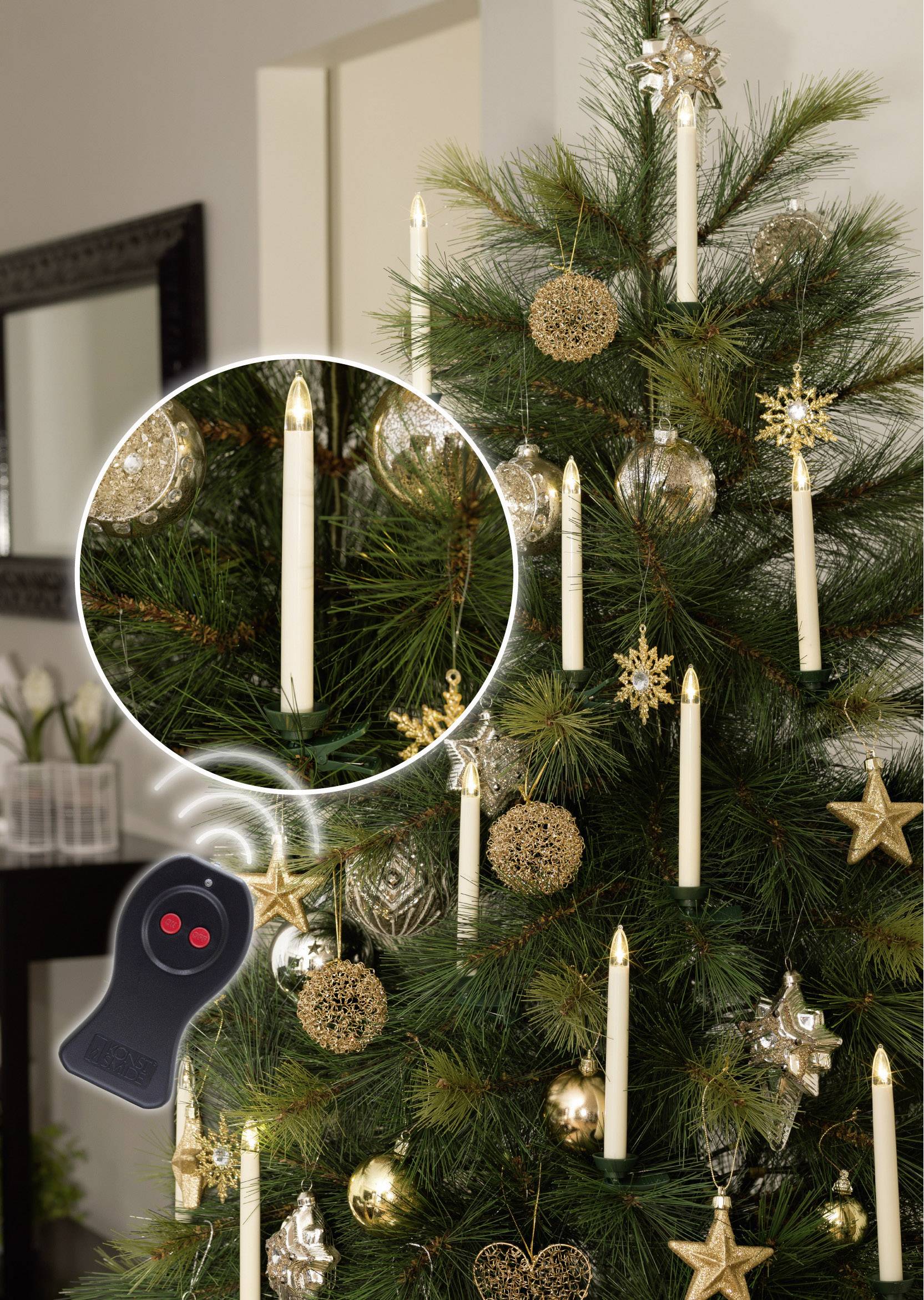 Illuminazione LED, 10 candele bianche senza fili con telecomando10 diodi bianco caldoa batteria (comprese)