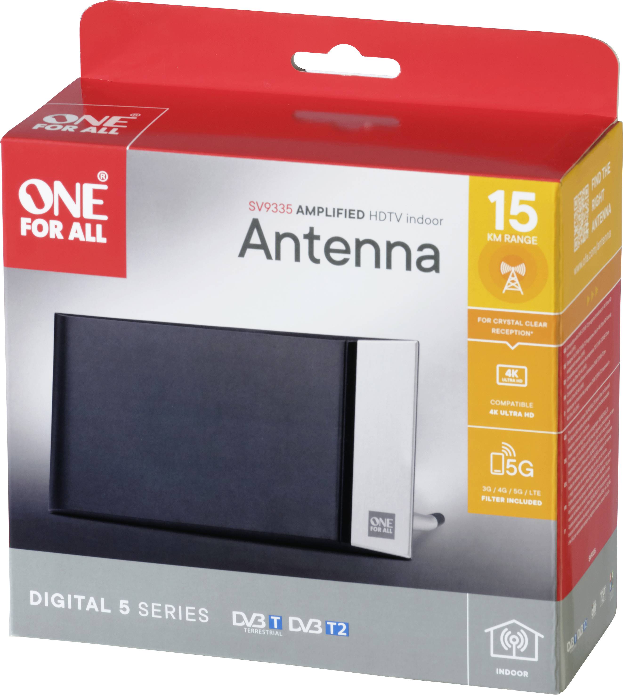 One For All SV 9335-5G Antenna passiva piatta DVB-T/T2 Ambiente interno Nero, Argento