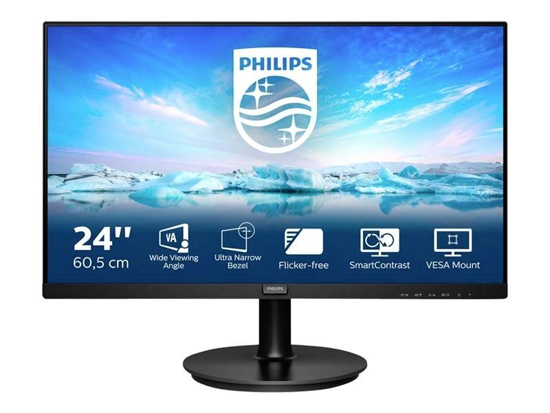 Philips 241V8L/00 Monitor LED ERP E (A - G) 61 cm (24 pollici) 1920 x 1080 Pixel 16:9 4 ms HDMI ™, Audio-Line-out, VGA V