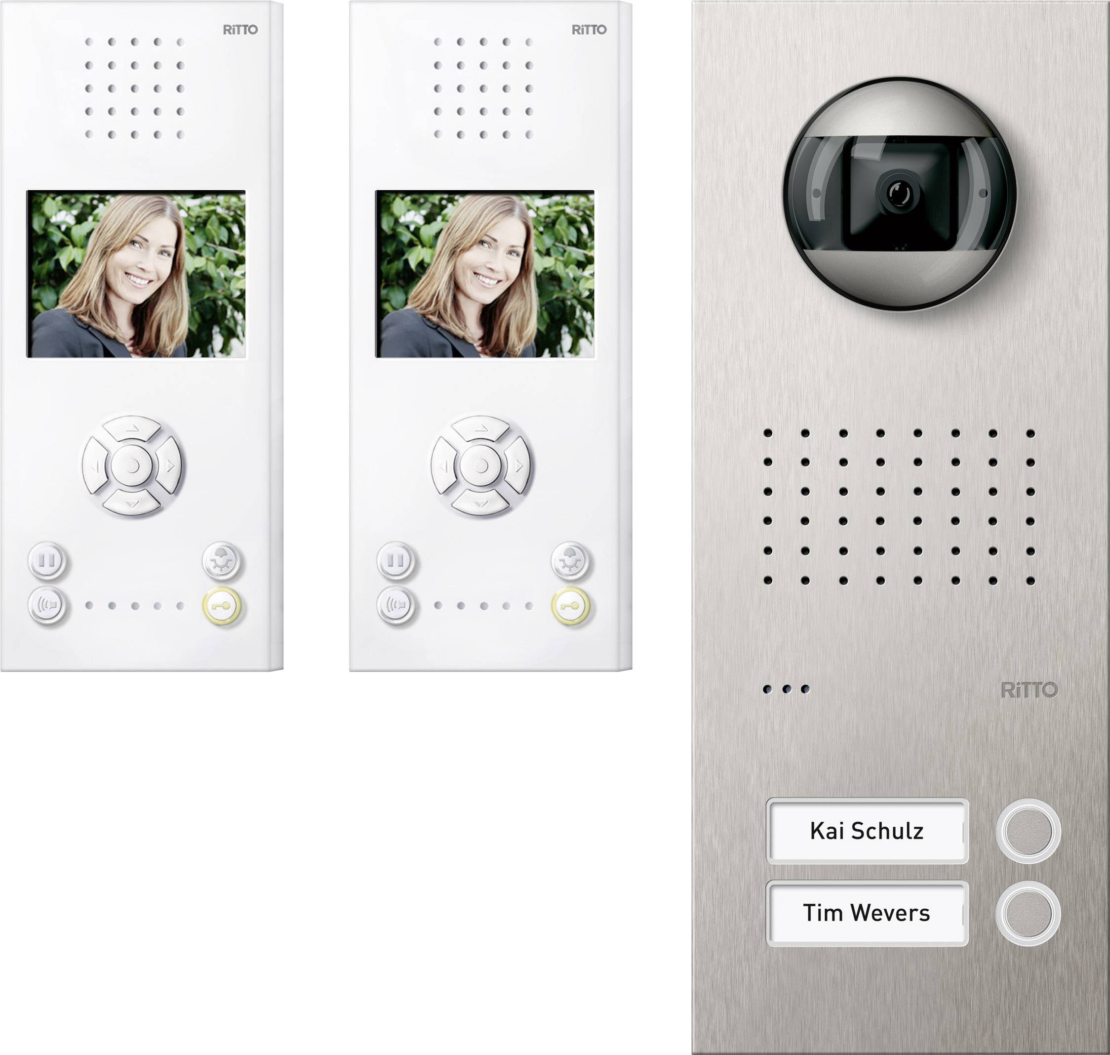 Ritto by Schneider RGE1819625 Video citofono Cablato Kit completo Casa Bifamiliare Bianco, acciaio inox