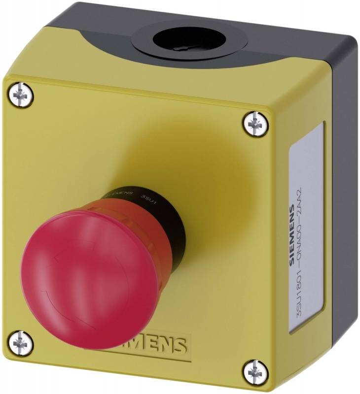 Siemens 3SU18010NA002AA2 3SU1801-0NA00-2AA2 Pulsante a fungo nell'alloggiamento Giallo Sblocco a rotazione 1 pz.