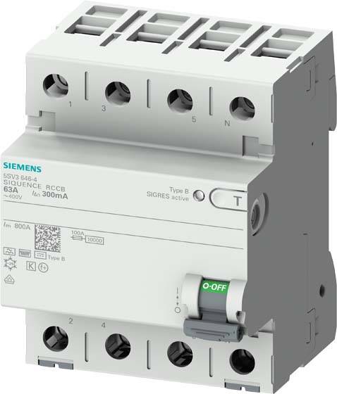 Siemens 5SV33474 5SV3347-4 Interruttore differenziale di sicurezza B 4 poli 80 A 0.03 A 400 V