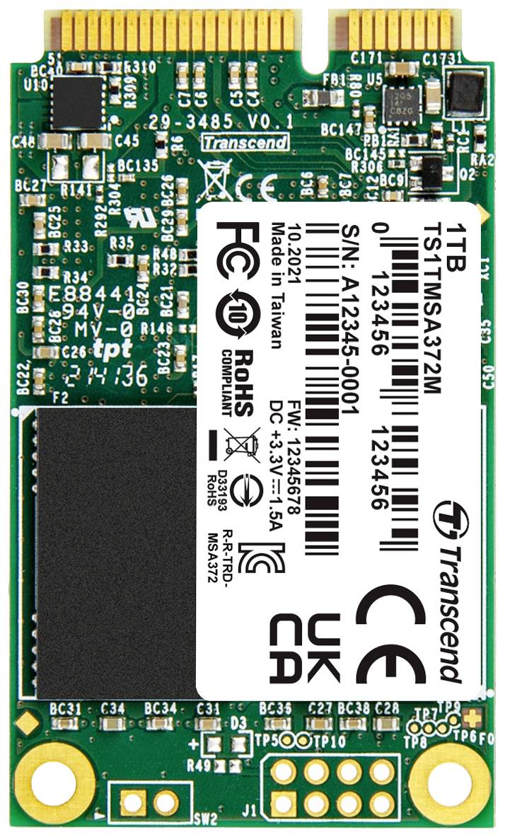 Transcend MSA372M 1 TB Memoria SSD interna mSATA SATA III Industrial TS1TMSA372M