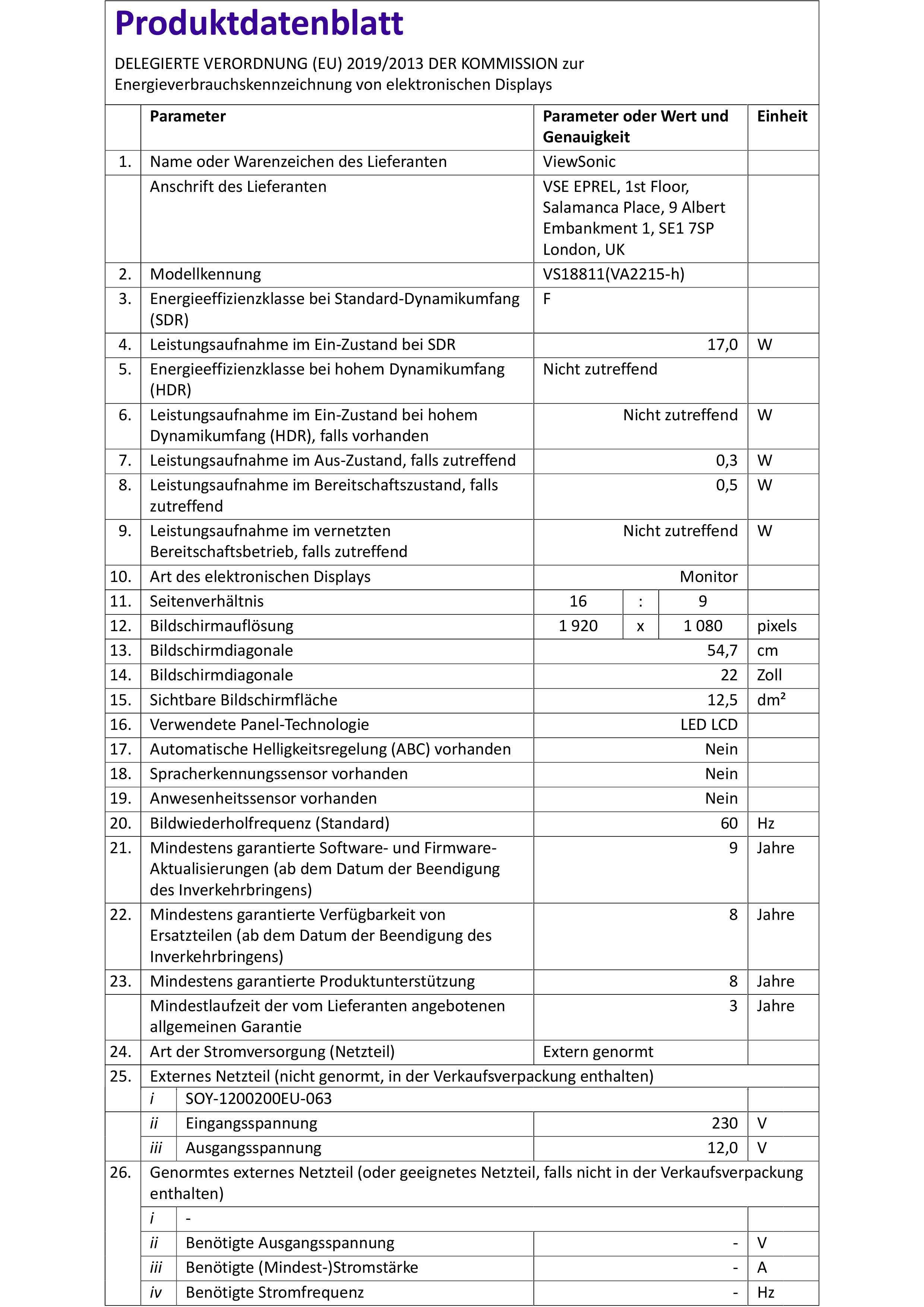 Viewsonic VA2215-H Monitor LED ERP F (A - G) 54.6 cm (21.5 pollici) 1920 x 1080 Pixel 16:9 5 ms VGA, HDMI ™, Jack VA LED
